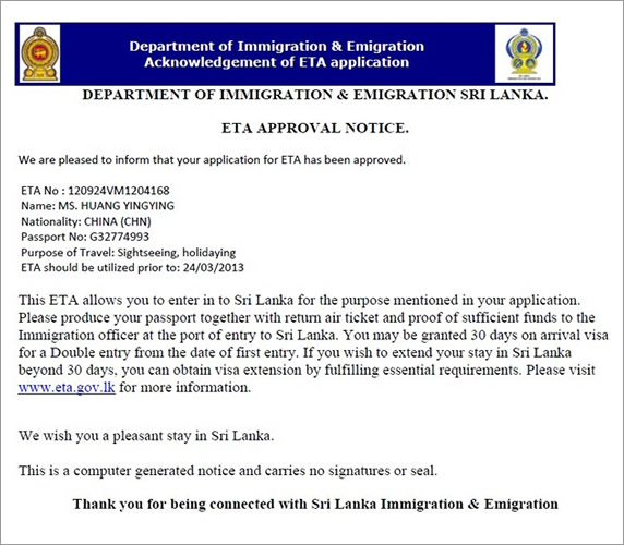 斯里兰卡旅游签证申请流程和样本